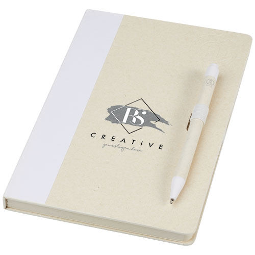 Dairy Dream A5 size reference recycled milk cartons notebook and ballpoint pen set White
