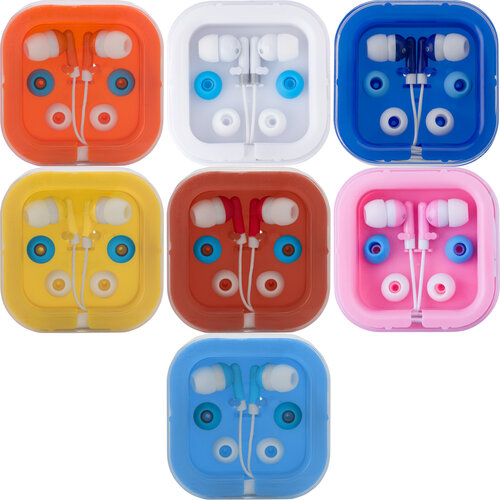 Ecouteurs filaires prise jack 3,5 mm livrés avec cordon de 100 cm et 2 jeux d'embouts supplémentaires dans un étui en plastique.