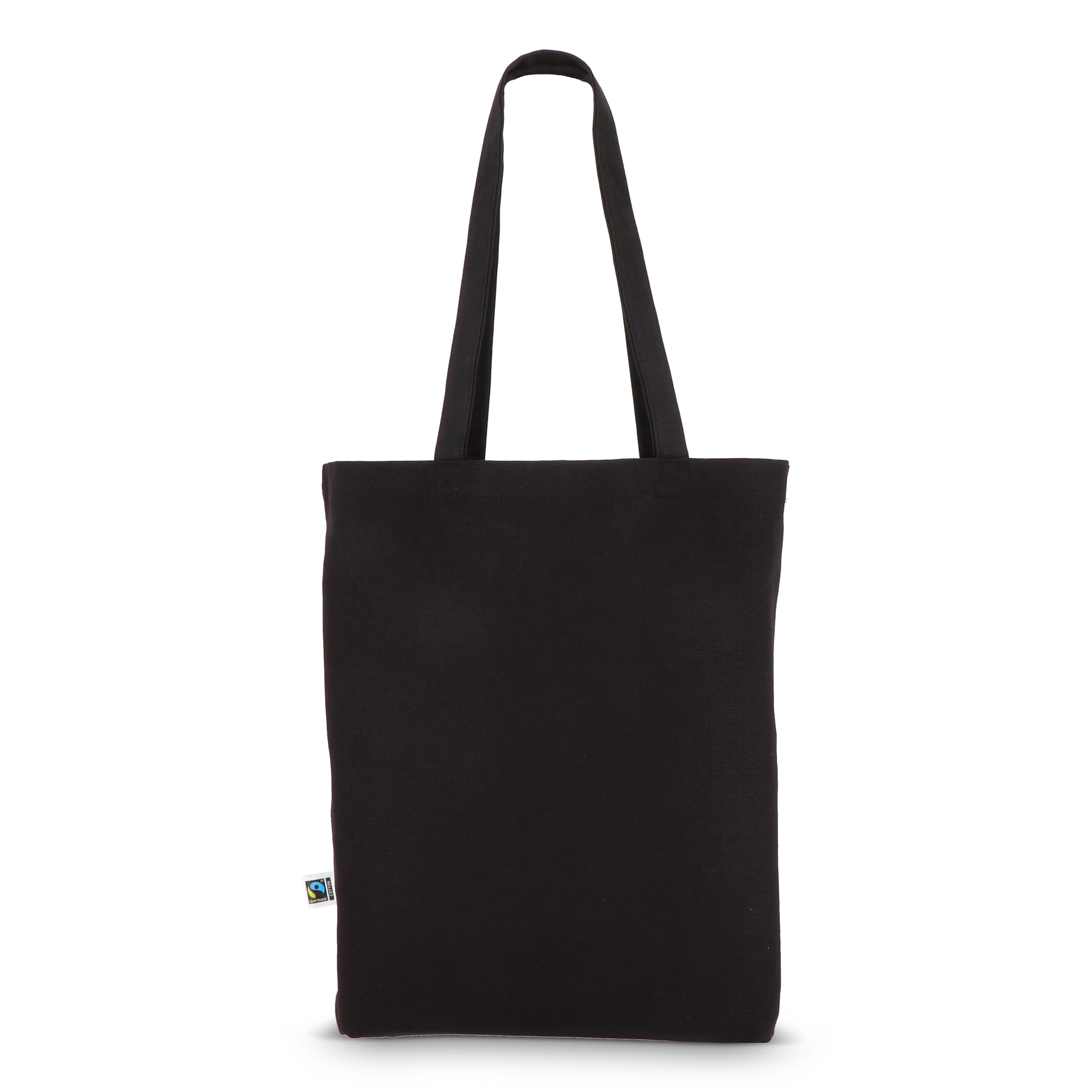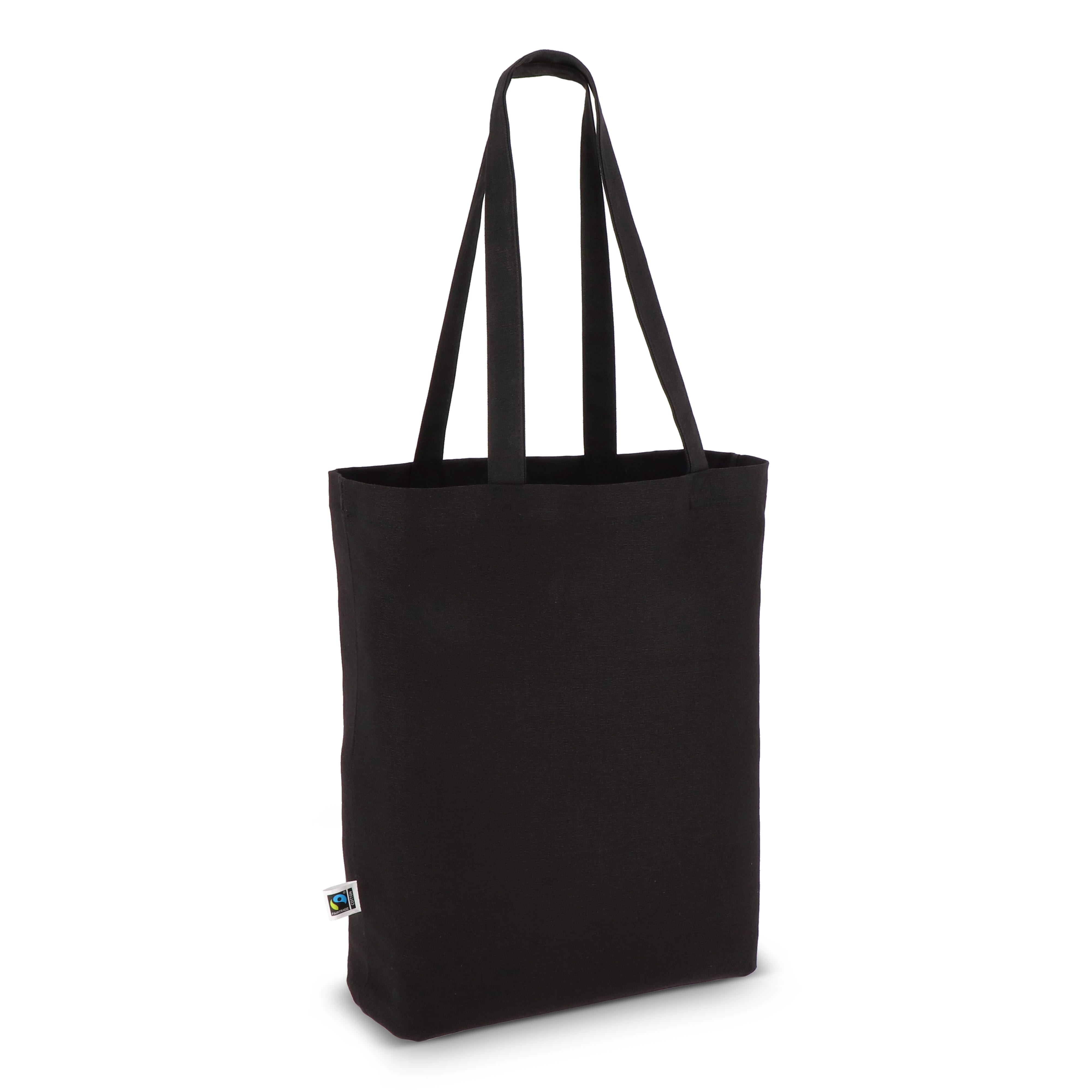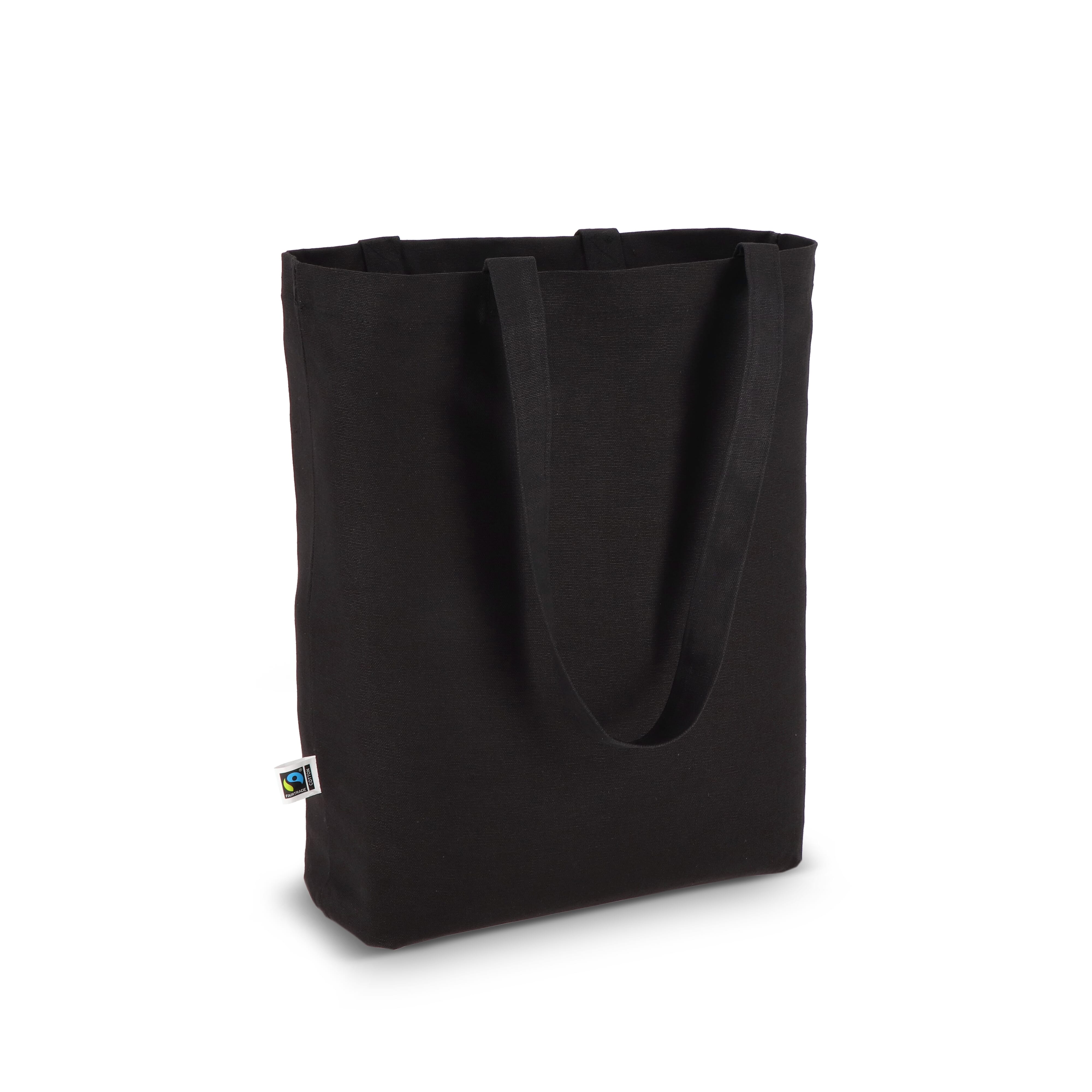 Fairtrade katoenen tas gekleurd lang 270g/m² 42x12x43cm Zwart